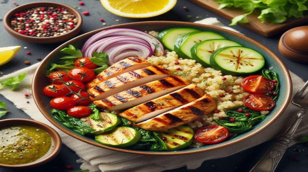 Packed with lean protein, fiber, and superfoods, this Grilled Chicken & Quinoa Bowl is a perfect healthy lunch option to keep you full and energized while supporting weight loss.